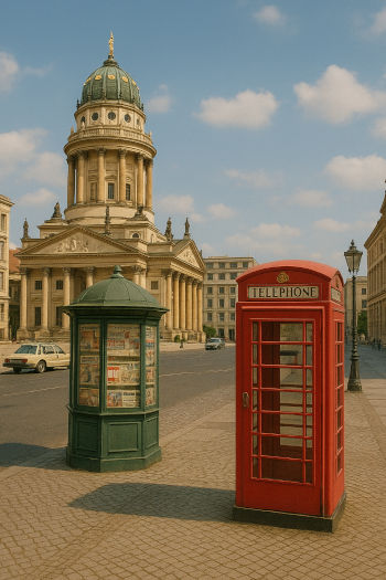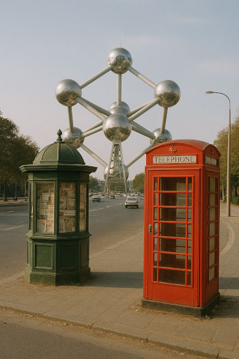 The context itself should be enough to determine the style of the kiosk and the phone booth.