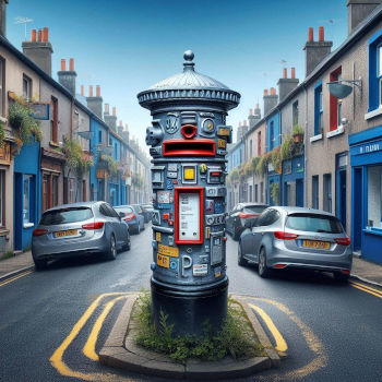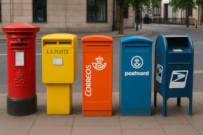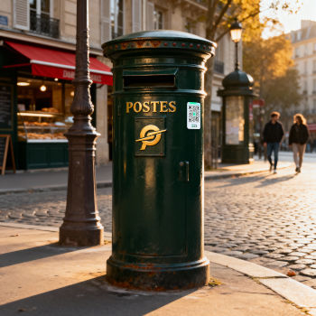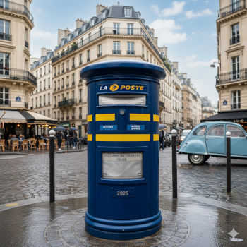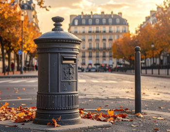 "Create a realistic picture of a typical mailbox on a street of Paris, France in 2025".